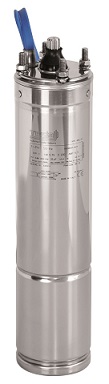 Moteur électrique submersible asynchrone bipolaire 4" rebobinable, entièrement réalisé en acier inoxydable AISI 304 pour toutes les parties en contact avec l’eau. Une version 4OLTW est également disponible, avec condensateur intégré dans le moteur.